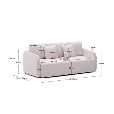 Žinylková, rozkládací, se snímatelným potahem, krémová, trojmístná, šířka 218 cm