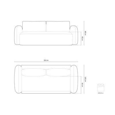 Žinylková, rozkládací/s úložným prostorem, krémová, trojmístná, šířka 262 cm