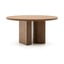 Kulatý jídelní stůl Nealy od značky Kave Home. Tento stůl zaujme svým provedením v dekoru dubu a originální podnoží s kombinací oblých a hranatých tvarů.