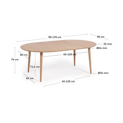 Rozkládací, s přídavnou deskou, v dekoru dubu, ø 90 cm, délka po rozložení 170 cm