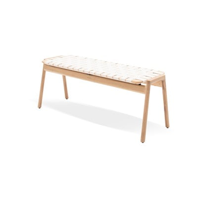 Klupa se může pochlubit precizním řemeslným zpracováním. Je vyrobena z přírodních materiálů, kombinující masivní dub a bavlněnou tkaninu, a tak vytvoří nadčasový doplněk domova. Tato lavice je všestranný, mobilní a lehký kousek nábytku, který nalezne své uplatnění například u nohou