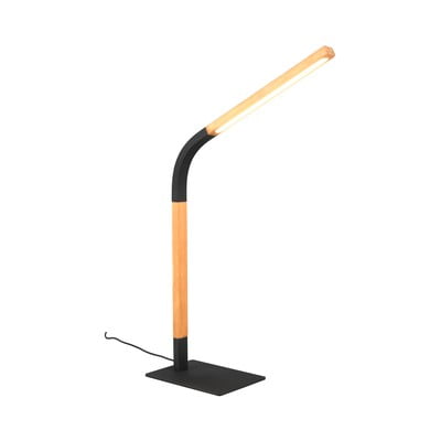 LED, s ohybatelnou konstrukcí/stmívatelná, s dřevěným stínidlem, dřevěná/kovová, do zásuvky, černá/v přírodní barvě, výška 73,5 cm