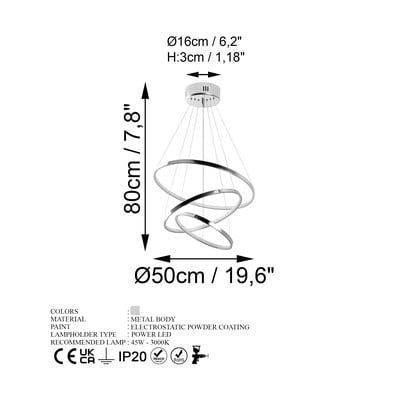 LED, kovové, ve stříbrné barvě, ø 50 cm, výška 80 cm
