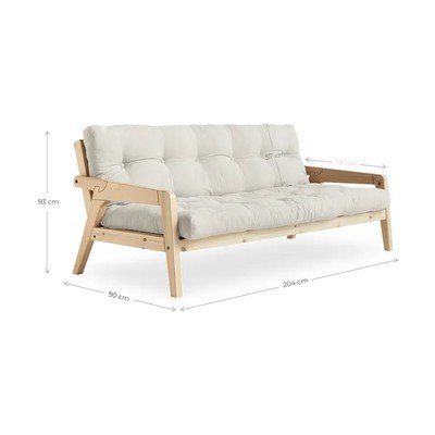 Pohovka Grab je ideálním společníkem jako pohovka i v rozloženém stavu jako dvoulůžko. Područky jsou navrženy tak, aby se snadno uvolnily a mohly být použity jako zadní nohy u dvoulůžkové postele, což velmi usnadňuje přeměnu pohovky na postel. Kromě toho, je pohovka Grab dodávána s pohodlnou futonovou matrací.