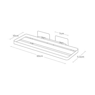 Polička se snadno instaluje na stěnu pomocí přiloženého adhezivního háčku a ušetří tak cenné místo na umyvadle.