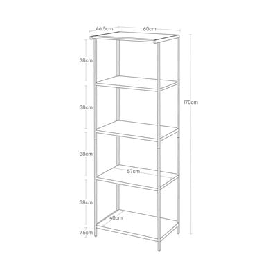 Pět polic poskytuje dostatek prostoru například pro objemnější kuchyňské spotřebiče, jako jsou mikrovlnné trouby nebo toustovače. Součástí je také deset samostatných háčků pro zavěšení dalších věcí.