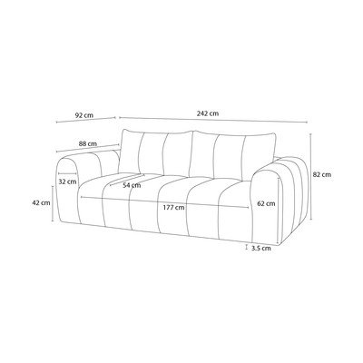 ModráTrojmístnáŠířka 242 cmHloubka 92 cmHloubka sedáku 54 cm