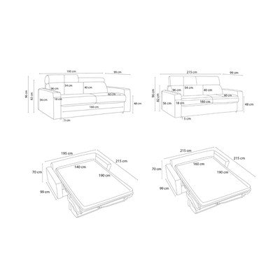 Žinylková, na každodenní spaní/polohovací/rozkládací, modrá, dvoumístná, šířka 195 cm