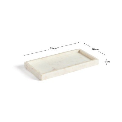 Dekorační tác Serela od značky Kave Home zaujme svými rovnými liniemi a čistými rohy, které mu dodávají elegantní a zároveň osobitý vzhled. Je vyroben z mramoru, přičemž každý kus je originál s jedinečnou kresbou a žilkováním, což odráží autenticitu kamene.