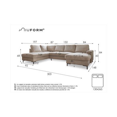 SametováRozkládací/s úložným prostoremLevý roh/do "U"Tmavě modráVícemístnáŠířka 303 cmHloubka 197 cmHloubka sedáku 57 cm