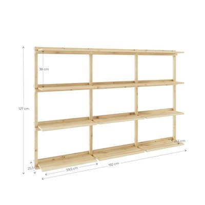 Knihovna je vyrobena z borovicového dřeva v přírodní barvě. Čisté linie a lehké proporce jí dodávají téměř vznášející se vzhled, zatímco rafinované spoje přidávají jemný, ale sofistikovaný dotek. Rozměry knihovny jsou 192 x 127 cm.