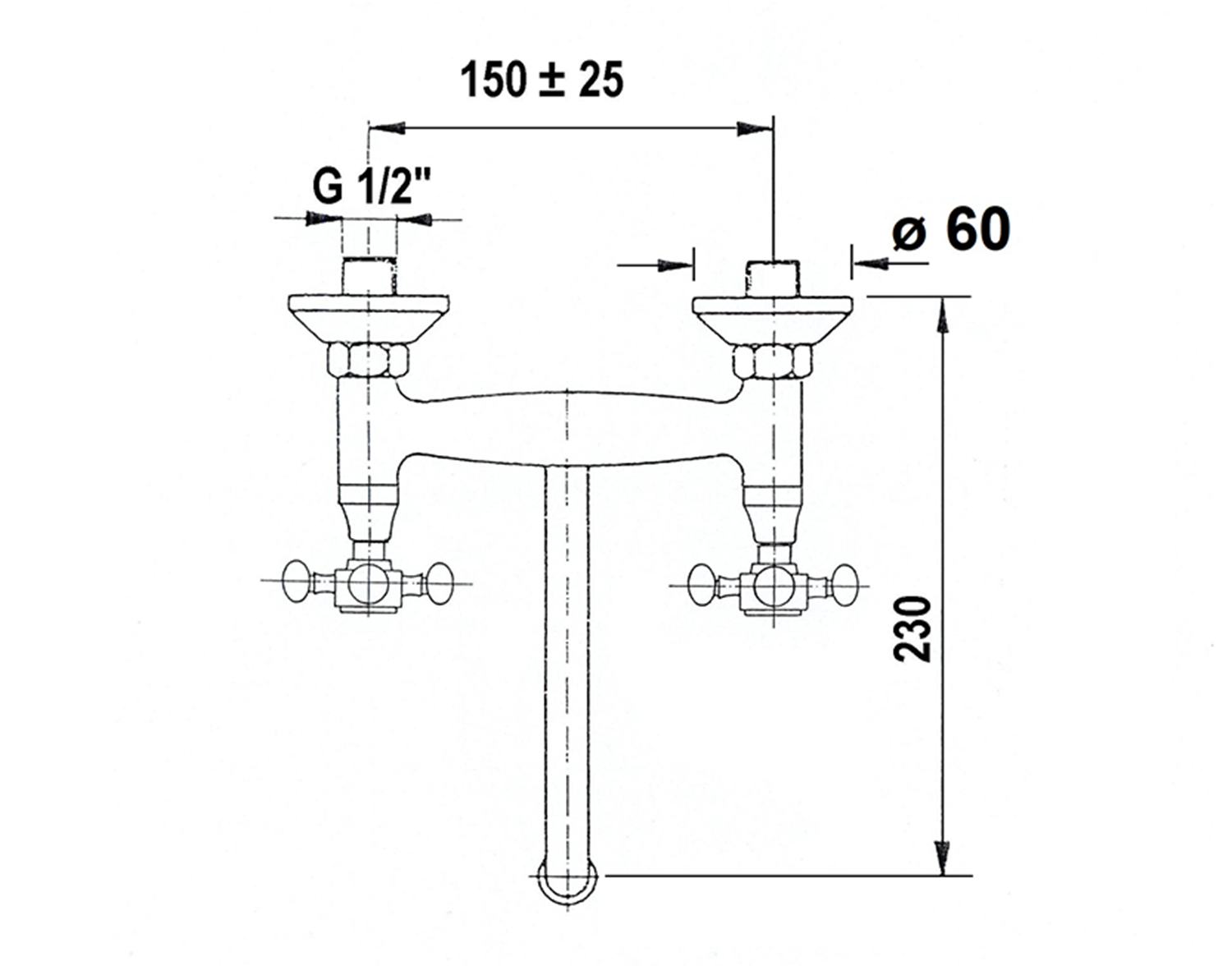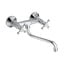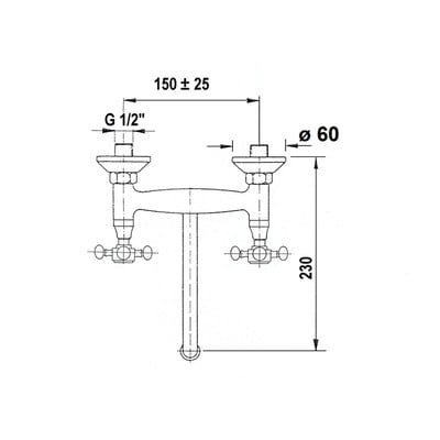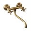 Tato mosazná nástěnná baterie s kohoutkovým ovládáním zaujme svým retro provedením. Je vybavena spodním otočným ramenem. Rozteč přívodů vody činí 150 mm.