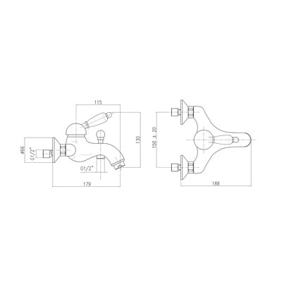 Tato nástěnná vanová baterie v mosazném provedení disponuje pákovým ovládáním a tlakovým přepínačem vana/sprcha. Vzhledem k tomu, že je dodávána bez příslušenství, je třeba k ní dokoupit ruční sprchu i sprchovou hadici. Rozteč přívodu vody činí 150 mm.