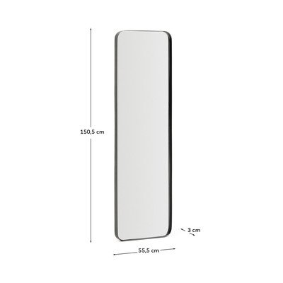 Nástěnné zrcadlo Marco od značky Kave Home se pyšní minimalistickým designem a čistými liniemi. Jeho tenký kovový rám dodává zrcadlu pevnost a elegantní vzhled, zatímco zaoblené rohy změkčují celkový dojem.