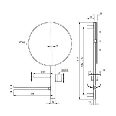 Vybavte svou koupelnu touto tímto multifunkčním produktem. Konstrukce nabídne poličku (o délce 20,8 cm), která unese až 7 kg kosmetických produktů či jiných nezbytností, kelímek na kartáčky, dále také zrcadlo (s průměrem 50,8 cm) a dvojitý držák ručníků (o délce 41,6 cm) s možností 90° rotace.