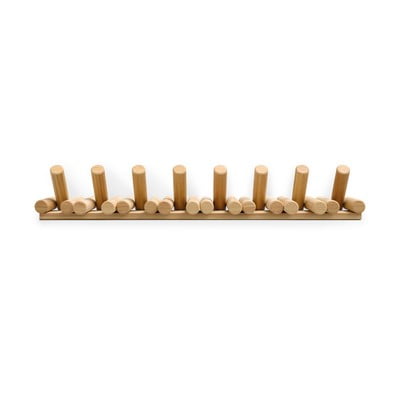Je vyroben z krásného zkoseného borovicového dřeva a nabízí osm výklopných háčků. Každý z nich unese až 2,3 kg, takže se na ně dají pověsit kabáty, tašky nebo šperky. Když se háčky nepoužívají, dají se sklopit, čímž věšák získá elegantní a minimalistický vzhled.