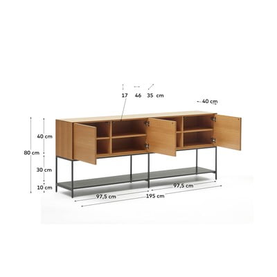 V dekoru dubu, z MDF, povrchová úprava: dýha/povrchová úprava: lak, v přírodní barvě, šířka 195 cm, výška 80 cm, hloubka 40 cm, …
