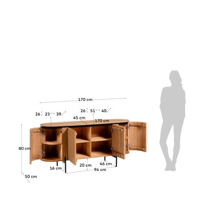 Z mangového dřevaPovrchová úprava: bělení/povrchová úprava: lakMatnáV přírodní barvěŠířka 170 cmVýška 80 cmHloubka 49 cm