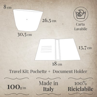 Obal na knihu s taškou od značky Kartos jsou vyrobené z omyvatelného papírového materiálu (100 g/m2). Zatímco rozměry desek jsou 18 x 13,7 cm, taška je velká 30,5 x 26,5 x 8 cm.