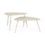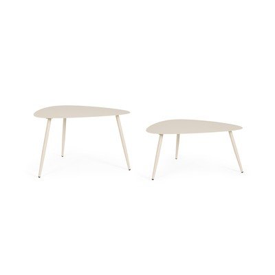 Sada Yvonne od značky Bizzotto obsahuje dva ocelové zahradní konferenční stolky v nadčasovém béžovém provedení. Stolky se liší výškou, jeden má 35 cm a druhý 45 cm. Díky subtilní konstrukci s tenkými nohami a organickému tvaru desky působí stolky elegantním a vzdušným dojmem. Snadno je umístíte i na menší balkon či terasu.