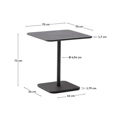 Jídelní stůl Brai od značky Kave Home je praktickým a stylovým doplňkem pro váš domov i zahradu. Jeho čtvercová deska s podélnými drážkami spočívá na pevné centrální noze a stabilní základně.