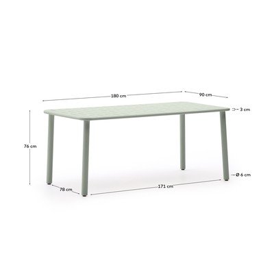 Zahradní jídelní stůl Brai od značky Kave Home. Díky odolné pozinkované oceli je odolný proti oděru a korozi, a tak se hodí pro vnitřní i venkovní použití.