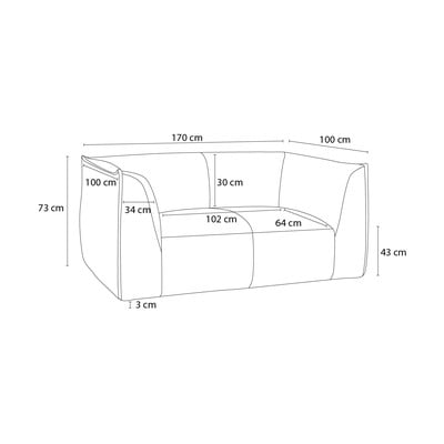 Z textilie bouclé, oranžová, dvoumístná, šířka 170 cm