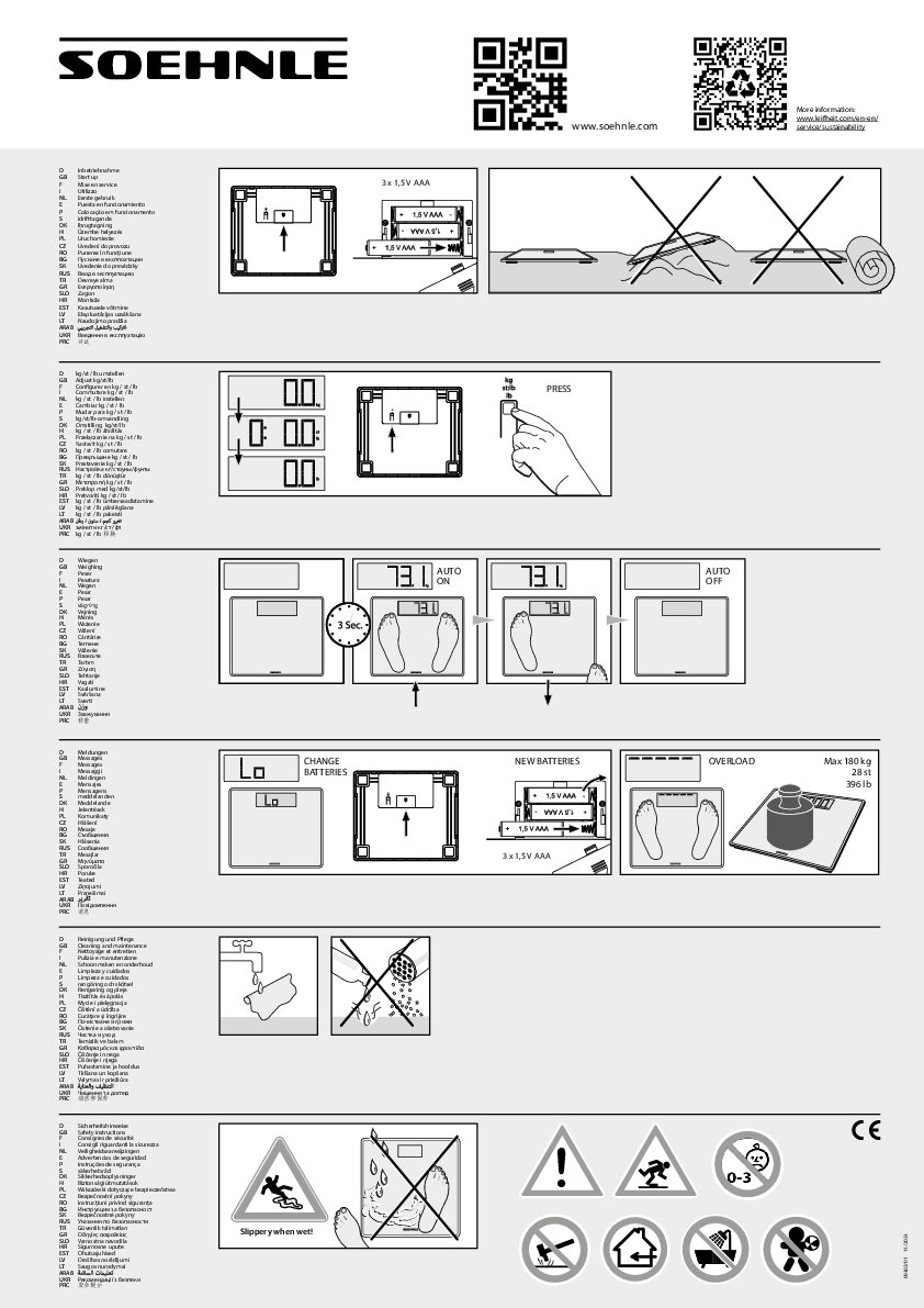 Osobní váha Sense Safe 300 od značky Soehnle je ultratenká digitální váha s extra velkou nášlapnou plochou z nerezové oceli, která nezanechává otisky. Disponuje velkým LCD displejem s číslicemi o velikosti 4,5 cm. Maximální nosnost je 180 kg s přesností vážení na 100 g. Váha se automaticky zapne při vstupu a vypne po zvážení. Napájena je třemi AAA bateriemi, které jsou součástí balení a které jsou zabezpečeny šroubkem.
