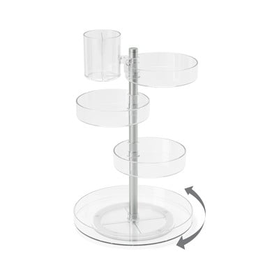Jedním takovým je i tento organizér. Díky tomu, že má výškově přizpůsobitelné přihrádky, které jsou navíc otočné o 360°, umožňuje snadný přístup ke všem uloženým předmětům.