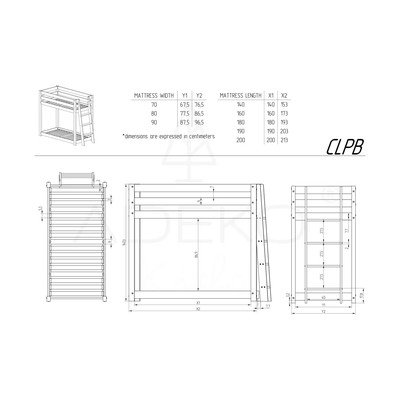 90x190 cm, patrová, s roštem, z borovicového dřeva, povrchová úprava: bez ošetření/povrchová úprava: kartáčování, v přírodní barvě
