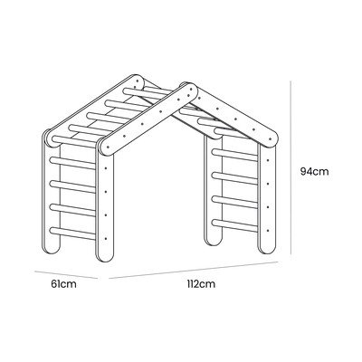Montessori pikler trojúhelník od značky Meowbaby. Jeho modulární design umožňuje sestavit buď jeden velký domeček, nebo dva menší žebříky pro variabilní hru.