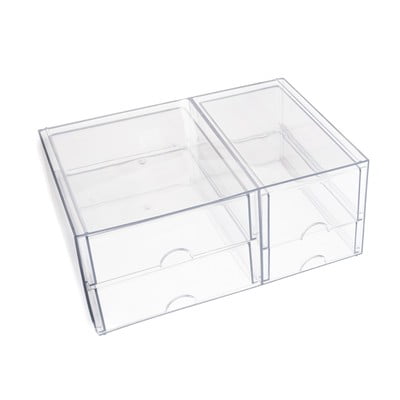 Organizér je rozdělen na dvě části vedle sebe. Každá část nabízí dvě výsuvné zásuvky, které jsou vybaveny praktickým půlkulatým výřezem pro snadné otevírání.