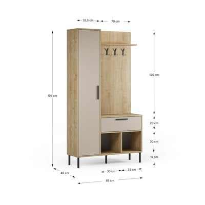 Předsíňová sestava v dekoru dubu v krémovo-přírodní barvě 108x195x35 cm Heidy – Marckeric