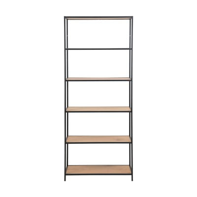 Pro kolekci Seaford je typická vzhledově subtilní kovová konstrukce v černé barvě. Ta je v tomto případě doplněna o police v dekoru divokého dubu.