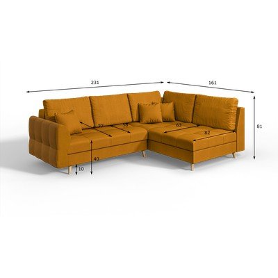 Pravý roh/do L, v hořčicové barvě, vhodné pro mazlíčky, trojmístná, šířka 231 cm