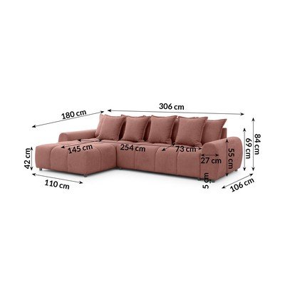 Levý roh/s lenoškouV terakotové barvěVoděodolná/odolné vůči skvrnámČtyřmístnáŠířka 306 cm