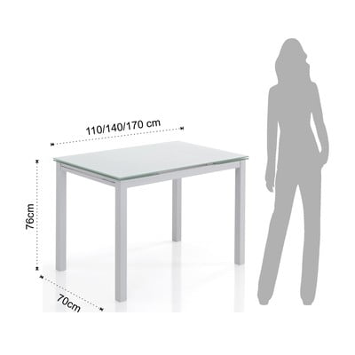 RozkládacíS přídavnou deskouSe skleněnou deskou70x110 cmDélka po rozložení 170 cm