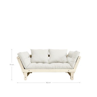 Pohovku si můžete díky sestavitelné borovicové kostře a měkkému futonu (což je barevná matrace, která se svým tvarem a funkcí inspiruje v Japonsku) poskládat do několika různých poloh: