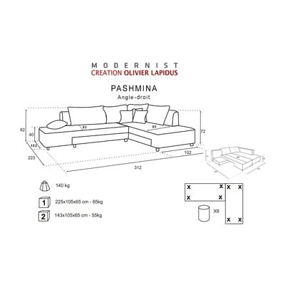 Pashmina je rafinovaná pohovka, kterou snadným přesunutím dvou dílů předěláte na postel pro návštěvy. Ve složeném stavu pak pohodlně pojme až 6 osob.