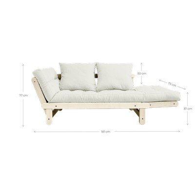 Pohovku si můžete díky sestavitelné borovicové kostře a měkkému futonu (což je barevná matrace, která se svým tvarem a funkcí inspiruje v Japonsku) poskládat do několika různých poloh: