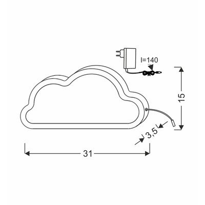 Dětská lampička CloudDřevěná, do zásuvky, LED, šířka 3,5 cm, délka 31 cm, výška 15 cm