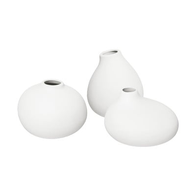 Například tato sada 3 miniaturních váz umí dokonale podpořit styl celého interiéru. Vázy jsou vyrobeny z odolného neglazovaného porcelánu a jejich povrch tak zůstává trochu hrubý.