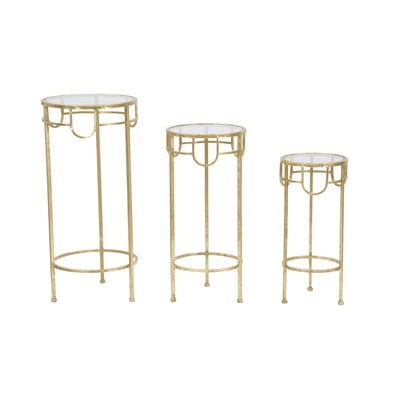 Sada 3 odkládacích stolků ve zlaté barvě perfektně zapadne do interiéru ve stylu glamour a kousky poslouží i jako stylové stojany na květiny.