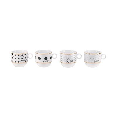 Milý hrneček dokáže zlepšit každé ráno. A co je lepší než jeden hrneček pro milovníky silného espressa? Čtyři hrnečky ♥ Díky praktickému stojánku budou hned po ruce a zaberou méně místa.