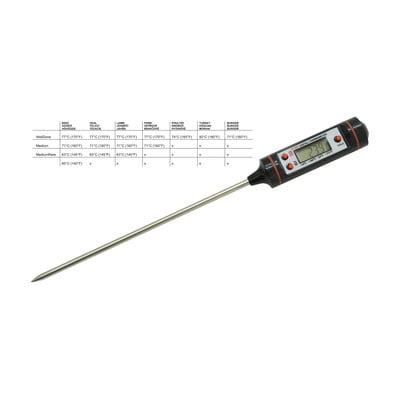 Sada obsahuje: obracečku, kleště, dvouzubá vidlice, mašlovačku, porcovací nůž, drátěný kartáč, náhradní kartáč, 4x grilovací jehlici, 8x držák kukuřice, příborový nůž a vidličku, slánku, pepřenku, chňapku, injekce na marinádu a digitální teploměr s nerezovou sondou a rozsahem -50 až 300°C. Vše je úhledně uloženo v praktické textilní brašně, která usnadní přenášení i skladování.
