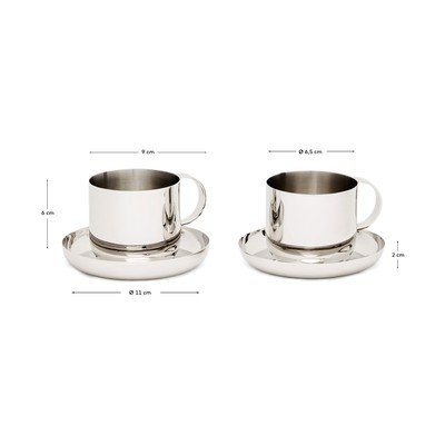 Šálky Nirela v sadě dvou kusů od značky Kave Home. Vyrobeny jsou z nerezové oceli, která zaručuje vysokou odolnost a snadnou údržbu.
