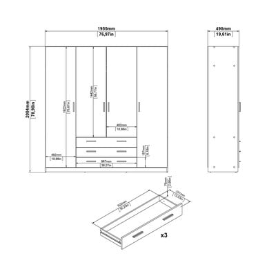 V dekoru dubu, z dřevotřísky, povrchová úprava: folie, v přírodní barvě, šířka 196 cm, výška 200 cm, hloubka 50 cm