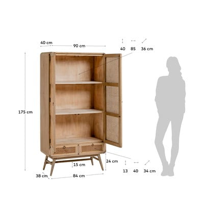 Hledáte netradiční šatní skříň? Poku jste fanouškem orientálního boho stylu, bude pro vás tato skříň z mindi dřeva a ratanového výpletu to pravé. Využít ji kromě ložnice můžete i v jídelně či obývacím pokoji jako příborník nebo uzavřenou knihovnu.