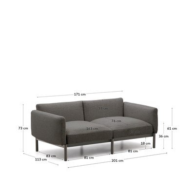 Čalouněná, dvoumístná, šedá, nosnost 200 kg, šířka 201 cm, výška 73 cm, hloubka 113 cm