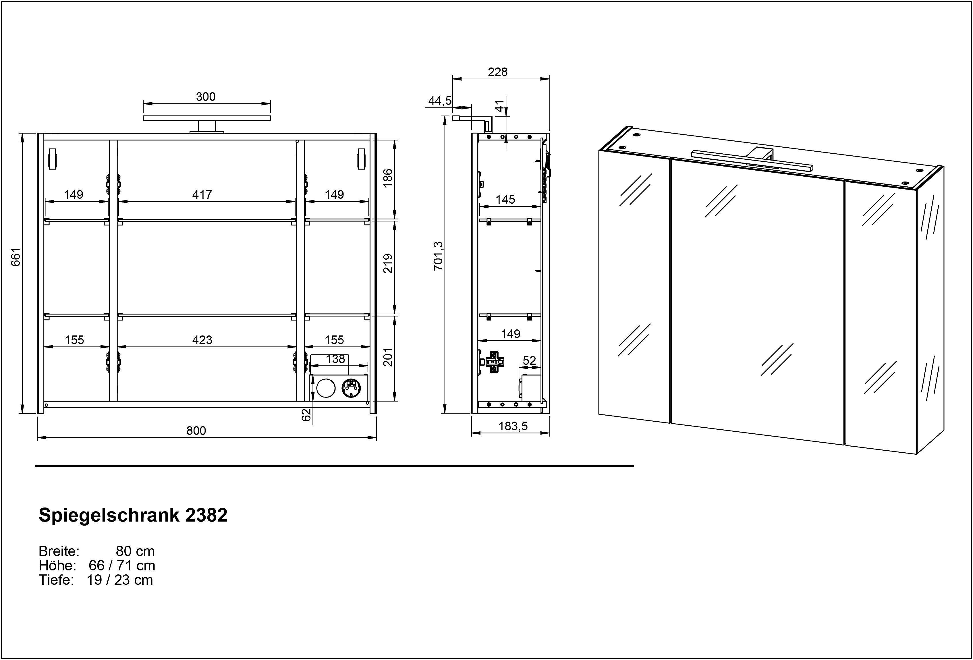 Závěsná/se zrcadlem/s osvětlenímZ dřevotřískyPovrchová úprava: melaminŠedáŠířka 80 cmVýška 71 cmHloubka 13 cm